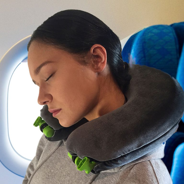 FaceCradle Travel Pillow (TM) is designed for the total environment that is economy class travel. It allows you to utilize the complete 180 degrees of space in and in front of your seat, to find you the optimum comfort position. We have suggested 5 comfort modes that access many new positions that allow your head to get to horizontal, closer replicating the feeling of being in bed. The hammock style support of modes 4 & 5 plus the “breath easy” position which replicates resting in a massage table takes comfort to a whole new level.